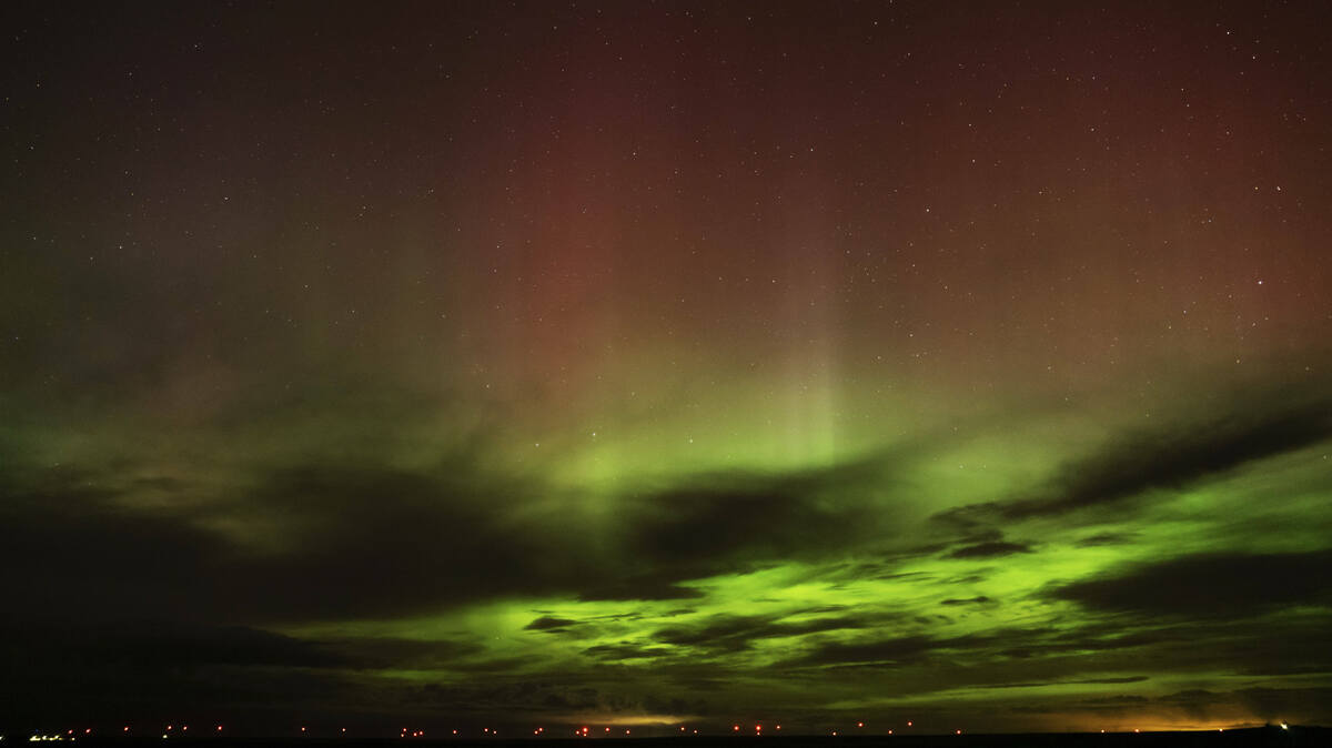 An aurora borealis, also known as the northern lights, is seen in the sky in the early morning hours of Monday, April 24, 2023, near Washtucna, Wash.