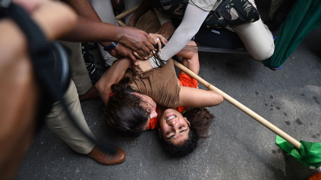 2023 was a truly memorable year for Indian sport. With so much having happened, ESPN India picks ten images that tell the story of the most stunning moments we witnessed over the year. Our tenth and final pick is a moment when India’s champion wrestlers were pinned down on the road by the police during their protests.