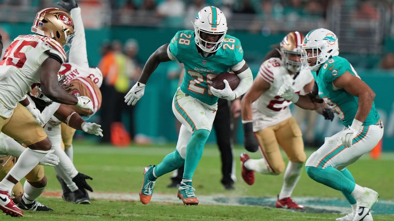 Most surprising performance: Miami ended a six-game streak of failing to eclipse 100 rushing yards with 168 on Sunday. Achane led the way with a season-high 121 rushing yards (his first time breaking 100 all season) and his performance was punctuated by his longest touchdown run of 2024. He scored from 50 yards to ice the game with two minutes left. — Marcel Louis-Jacques