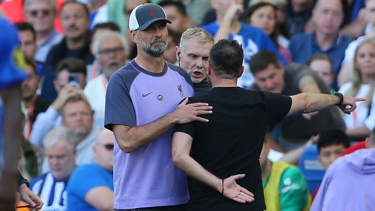 Brighton have been a bogey team for Klopp in recent years: Liverpool have registered just one win from their previous six Premier League clashes against them, drawing three and losing two. When asked postmatch if a draw had been a fair outcome, he admitted: “I think, unfortunately, yes … It’s a really good team and it’s difficult to defend [against] them all the time.” The intensity that the contest eventually built toward is a testament to both of these teams who, with differing enthusiasm, found themselves in Europa League action on Thursday. The European exertions of both teams, combined with unseasonably warm conditions, meant the game took some time to get going.