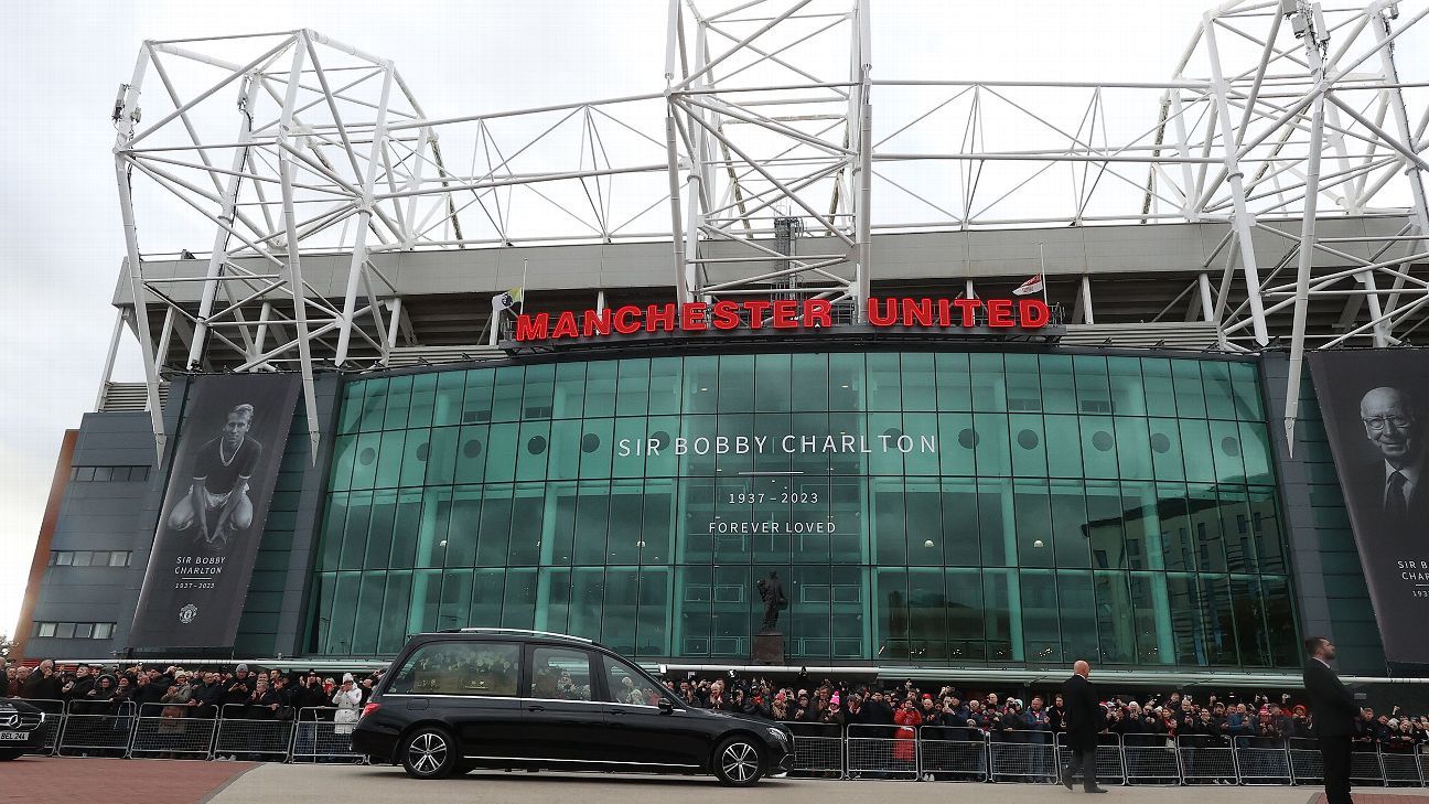 Thousands of fans welcomed the funeral cortege of Manchester United great Sir Bobby Charlton at Old Trafford on Monday as it made its way past the stadium to Manchester Cathedral for a private ceremony.